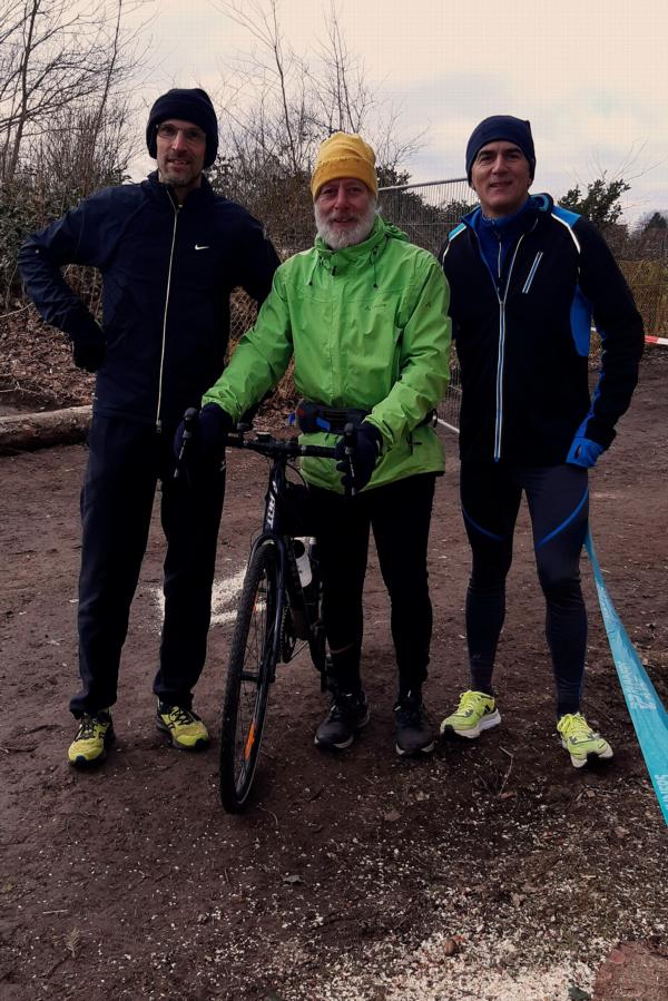 Zunächst sind Jorge Cosme und Matthias Lang über 3,3 km Kurzstrecke angetreten; bei Temperaturen so knapp unter Null Grad mußte auf steinhartem Boden ein Rundkurs am Sportplatz 3 mal absolviert werden. Dabei sind beide in ihrer jeweiligen AK vierte geworden; Jorge in der AK45 in 13:59 min und Matthias in der AK 50 in 14:35 min; Jorge hat zudem den 2. Platz mit der Mannschaft der LG Celle-Land in der AK40/45 erreicht.